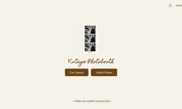 Little Vintage Photobooth is a free web app that transforms your photos into beautiful retro-style photo strips reminiscent of classic analog photo booths. ## Features - **Use Camera**: Take photos directly via your webcam to create authentic vintage strips - **Upload Photos**: Transform existing photos into retro photobooth format - **Vintage Aesthetic**: Automatically applies sepia, black & white effects with classic border styles - **No Sign-up Required**: Start creating immediately, no account needed ## Use Cases - Party & event photo strips - Vintage-style memories and keepsakes - Social media content creation - Wedding and celebration photo booths
