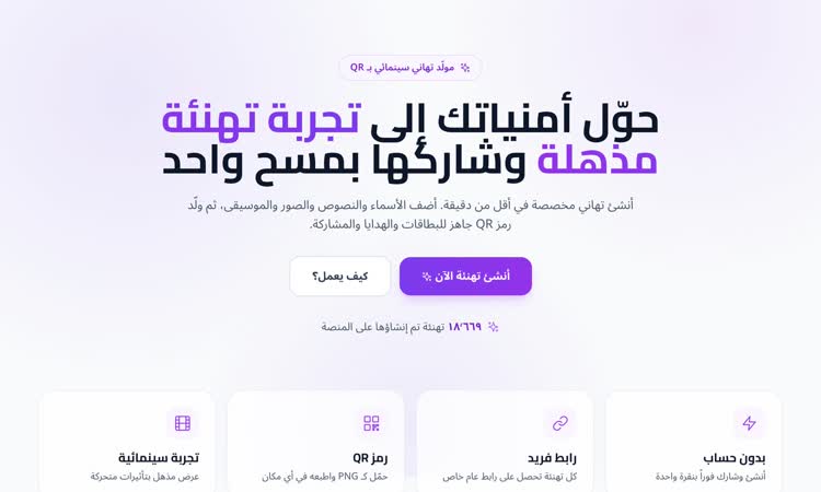 Create personalized greeting cards in under a minute. Add names, text, images, and music, then generate a QR code ready for cards, gifts, and sharing. Supports birthdays, Eid, Valentine's Day, and general greetings with a stunning cinematic experience.