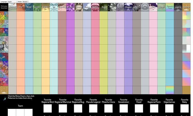 Pokémon team randomizer tool with multiple modes (Strict, Standard, Surplus, Silly). Filter by type, regional forms, Mega evolutions, and more. Supports multiple languages. Perfect for Nuzlocke runs, competitive team building, or just for fun.