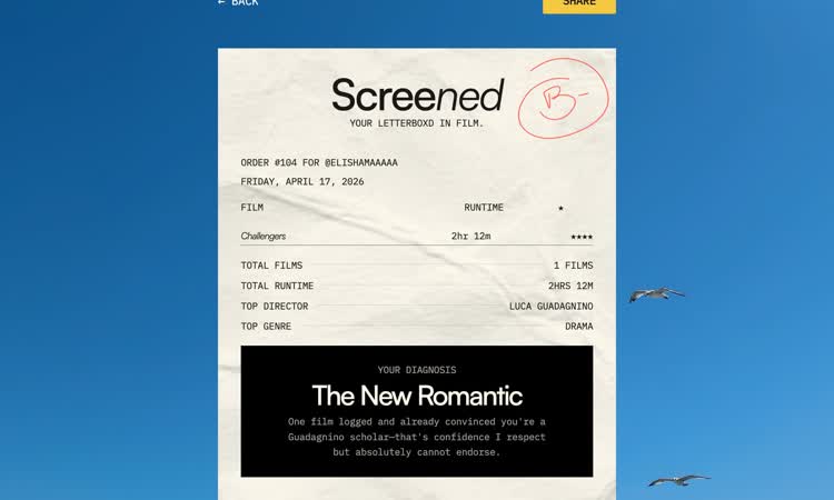 Generate a receipt of your highest rated Letterboxd films with a taste diagnosis. You've logged the films. Now see what they say about you.