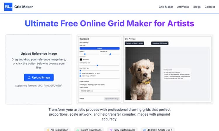 Grid Maker is a free online tool that helps artists create professional drawing grids for accurate image transfer and proportion mastering.