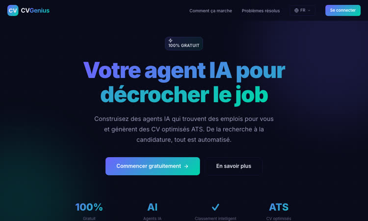 AI job seeking agent platform designed for Tunisian professionals. Features include: 100% free service, AI agents that find and apply to jobs automatically, ATS-optimized CV generation, intelligent job matching and ranking, multi-step workflow from profile setup to application. Built for French-speaking users in Tunisia.